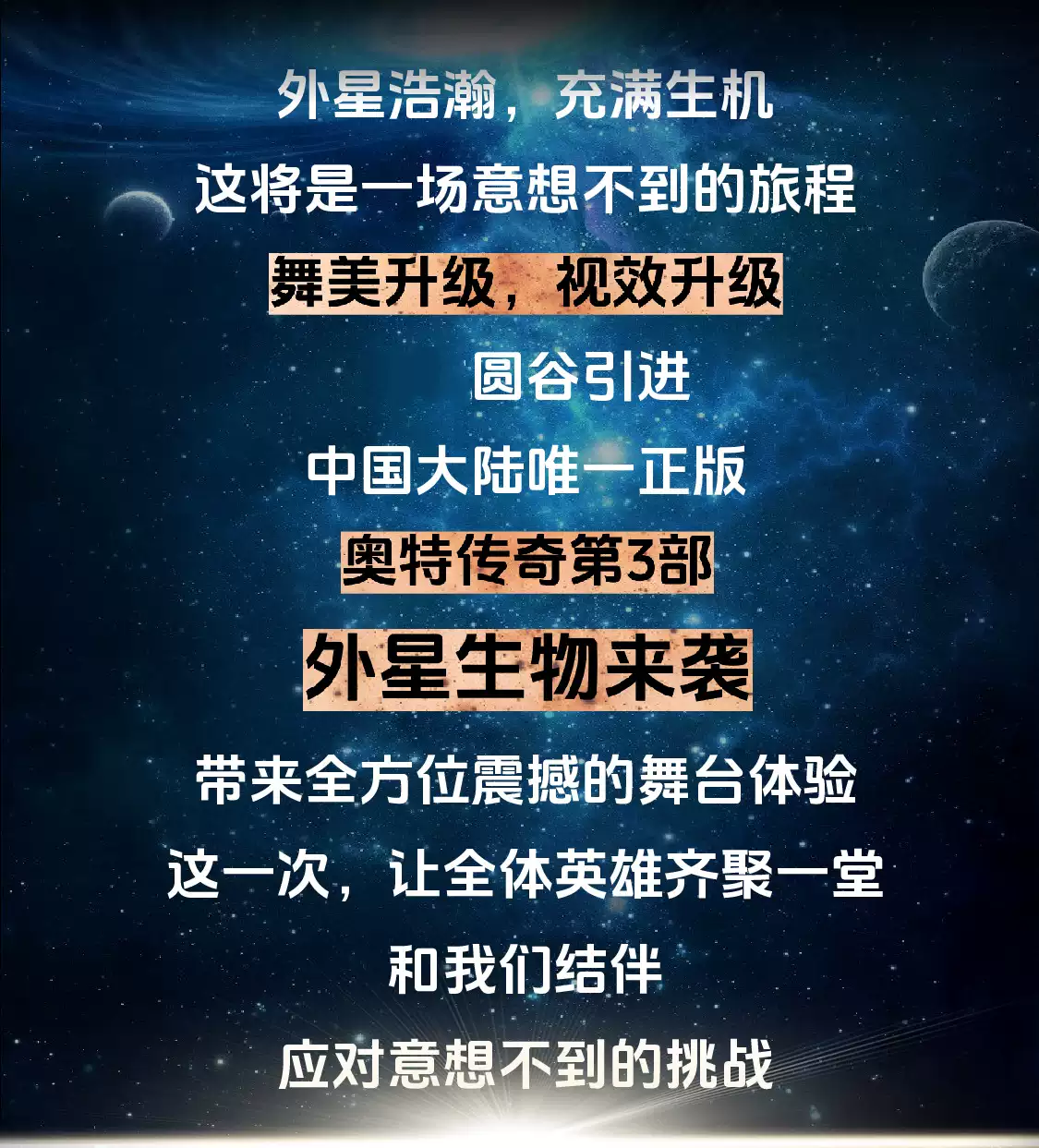 购买“380元档”演出票赠送小朋友与奥特曼合影机会一次。演出结束后,每10位小朋友为一组上台合影(无单独合影),由家长或同伴自行拍照,现场听从工作人员组织安排,有序参加。