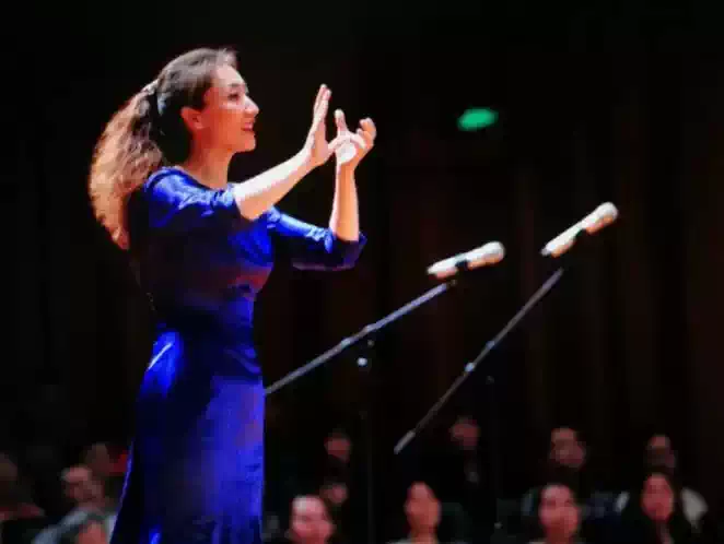 本场音乐会由著名青年指挥家李默然执棒,她是指挥大师严良堃先生亲手带出的唯一女硕士研究生,26岁即指挥总政歌舞团交响乐团和中国交响乐团合唱团,成功演出全本的《黄河大合唱》交响合唱音乐会,被誉为“严版黄河”传承人、优秀指挥家。