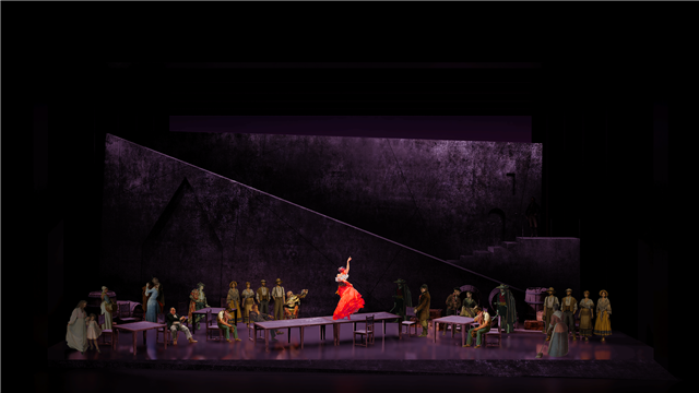 2026年推出的全新版本在完整保留比才不朽音乐精髓的基础上,深入挖掘“自由、欲望与命运”的现代命题。以极具当代性的剧场美学,对这部十九世纪的经典进行了大胆而深刻的重新解读。新舞台摒弃繁复写实,凝练而充满象征。广场、酒馆、荒野、斗兽场被重构为一个既压抑又炙热的情感炼狱。在极简又强烈的舞台视觉与充满张力的戏剧音乐中,这部150多年前的爱情悲剧被赋予了直抵人心的当代共鸣。