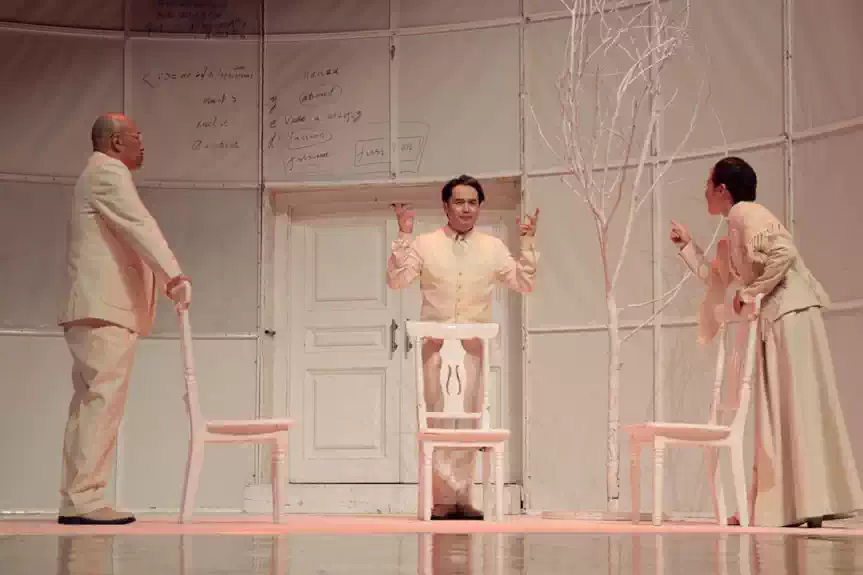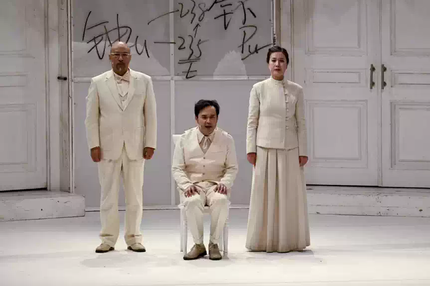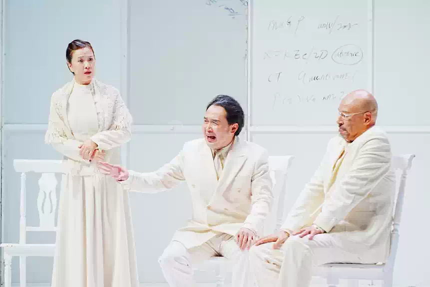 话剧《哥本哈根》以这一真实事件为蓝本,借由三位逝去灵魂——海森堡、波尔与波尔夫人玛格丽特——在“死后世界”的反复追问与回溯,展开一场关于科学伦理、民族忠诚与人类存亡的哲学思辨。全剧几乎完全依靠对话推进,在极简的舞台上,没有硝烟却充满张力,没有爆炸却震撼人心。每一个停顿、每一次走位、每一句对白,都在叩击观众内心最深处的道德天平。