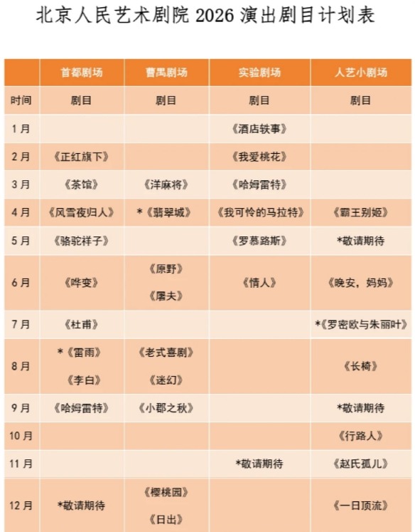 北京人艺2026年度演出计划新鲜出炉!即刻开启今年的剧场奔赴计划,坐等好戏相见