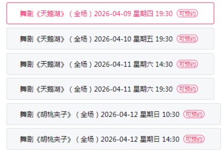 《天鹅湖》整场演出内容为:舞剧《天鹅湖》;