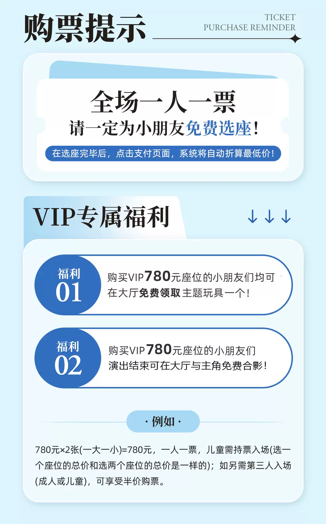 3、购票须知,请您知晓:1、成年节目1.2米及以下儿童谢绝入场(Children under 1.2m will not be admitted, except in performances for children.)。2、亲子儿童节目儿童一律凭票入场。3、因个人原因不能观看演出,一律不退不换!请谨慎下单
