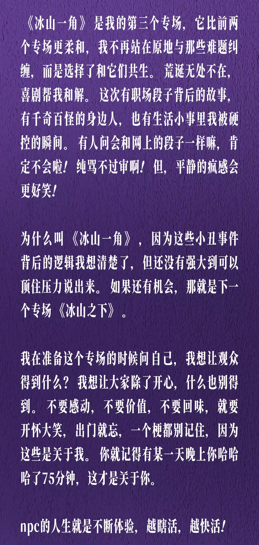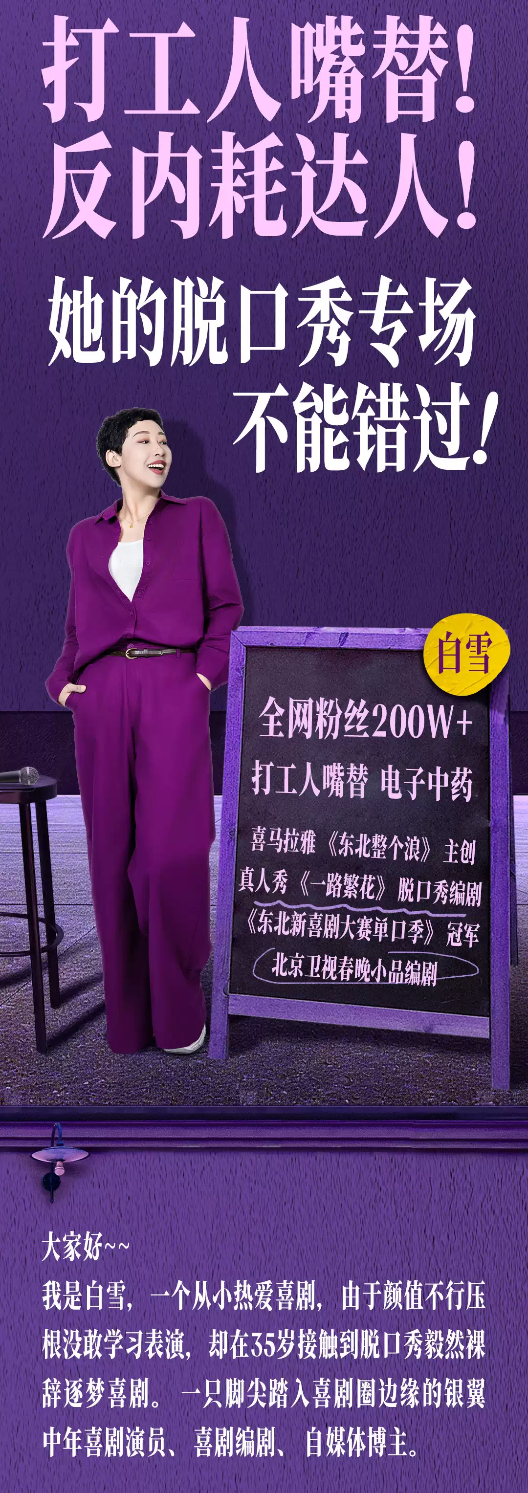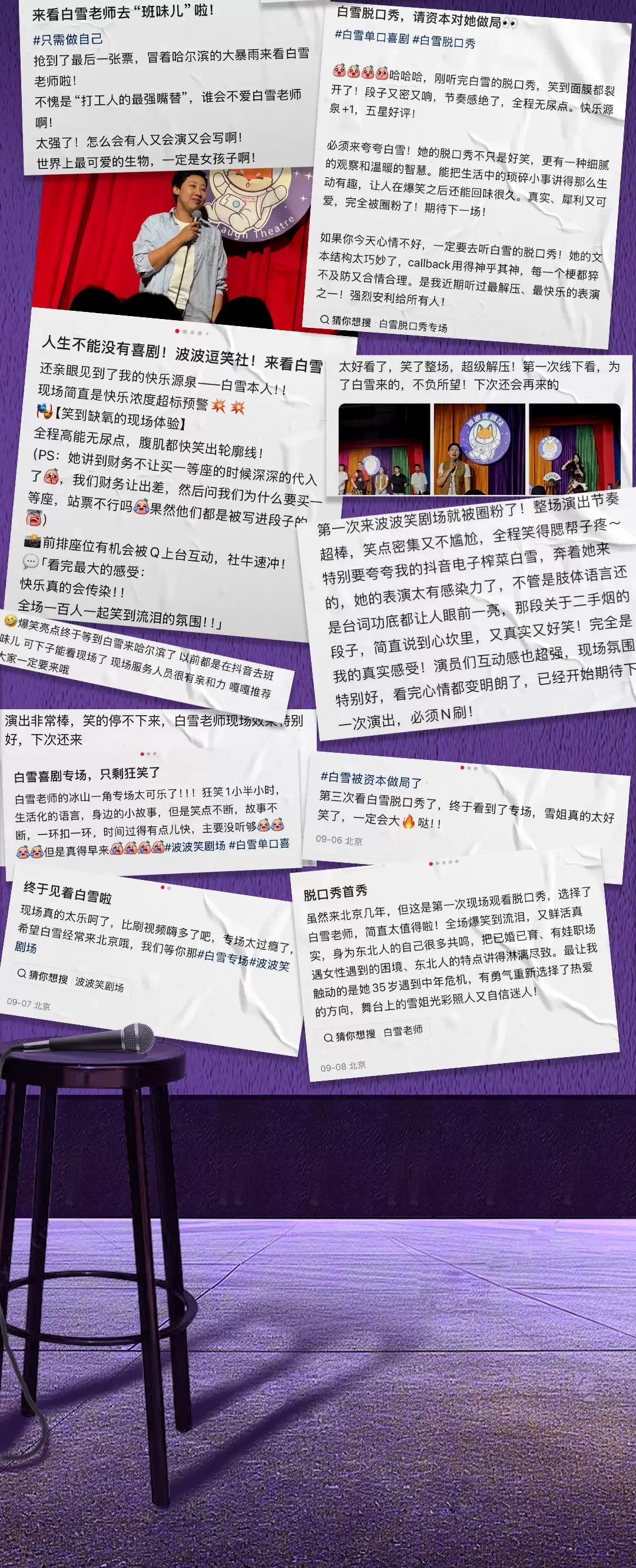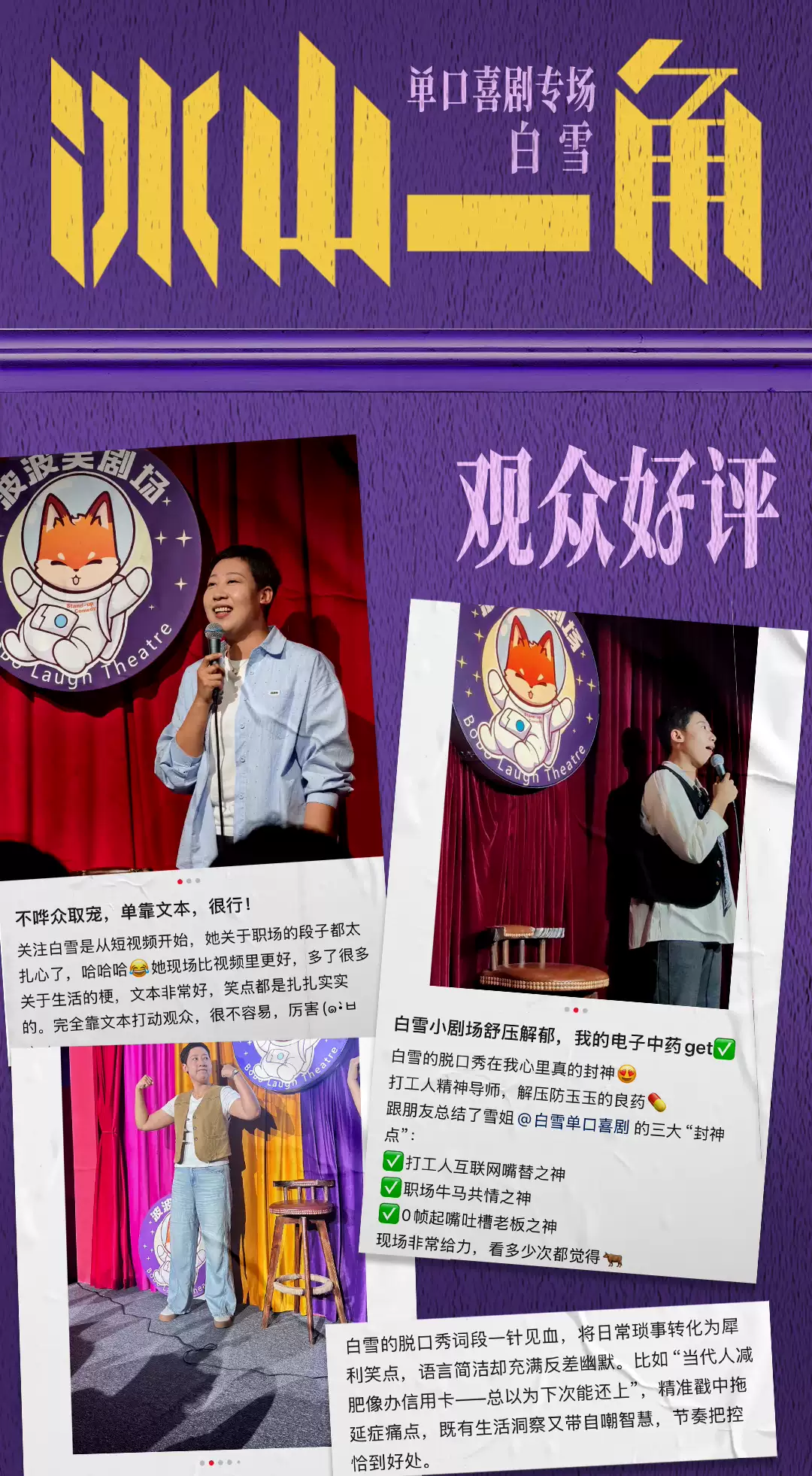 2-本场演出为白雪单口喜剧专场演出,全程约90分钟